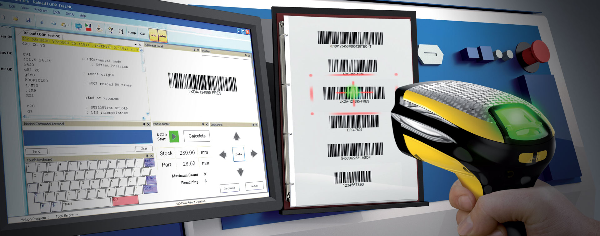 通過DATALOGIC得利捷工業(yè)手持閱讀器對使用條碼進行操作的機器進行配置。