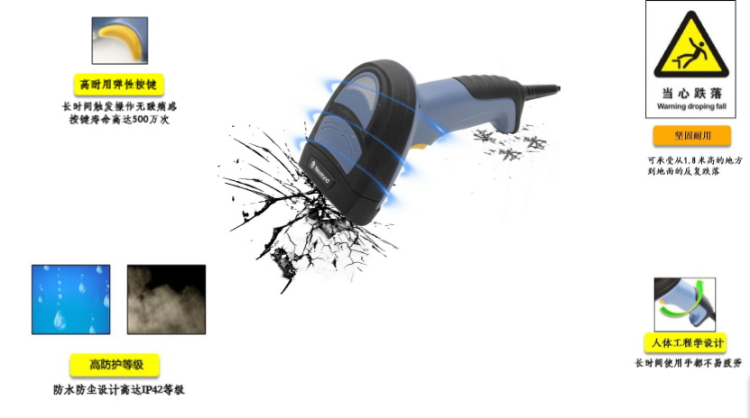新大陸NLS-NVH200高密二維手持式條碼掃描搶可實(shí)現(xiàn)快在50ms的時(shí)間內(nèi),識(shí)讀到3mil以上密度的紙質(zhì)碼和直接零部件標(biāo)識(shí)條碼(DPM),具備全面的快速識(shí)讀能力,同時(shí)搭配無(wú)閃頻的白光照明和清晰精確的十字激光系統(tǒng),快速提高了操作的效率,產(chǎn)品結(jié)構(gòu)堅(jiān)固耐用,可承受從1.8米高的地方到地面的反復(fù)跌落,并具備IP42防護(hù)等級(jí),所以說(shuō)非常適合在電子業(yè)或者是輕工業(yè)完成生產(chǎn)追溯管理。